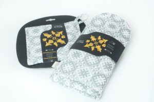 Seto mustri motiividega halli- ja valgekirju pajakinnas.