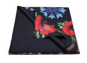 Muhu tikandimotiividega mikrofiibrist saunalina on kerge, õhuke, hästi imav ning kiiresti kuivav!